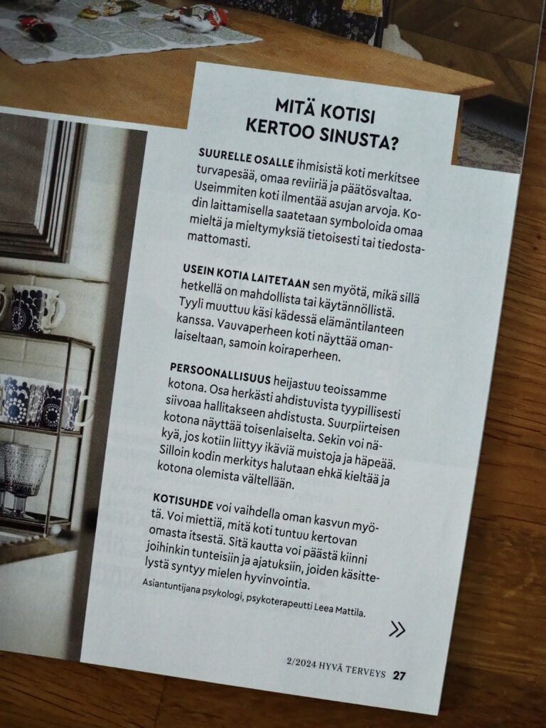 2. Hyvä Terveys-lehti haastatteli minua 2/24 ilmestyneeseen juttuun, jossa käsiteltiin ihmisten kotisuhdetta: