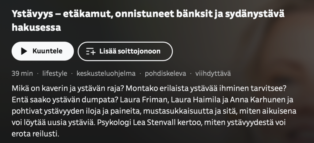 Kuuntele ystävyysjakso Yle Areenassa TÄÄLLÄ!